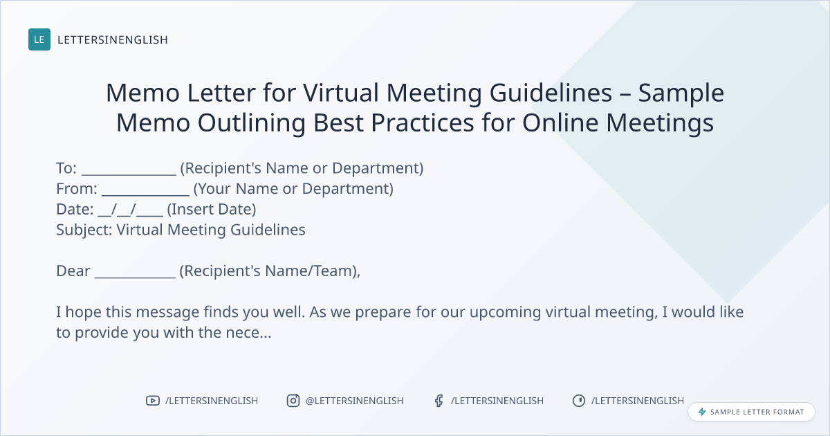 Memo Letter for Virtual Meeting Guidelines – Sample Memo Outlining Best Practices for Online Meetings