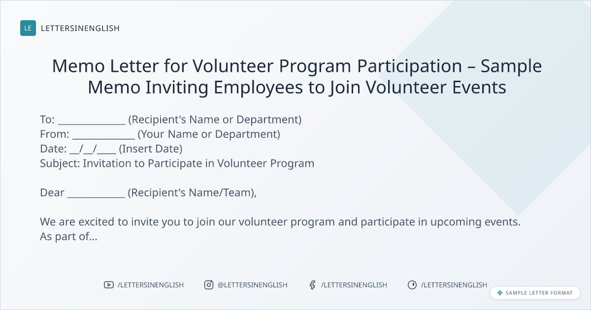 Memo Letter for Volunteer Program Participation - Invitation for Employee Involvement in Volunteer Events