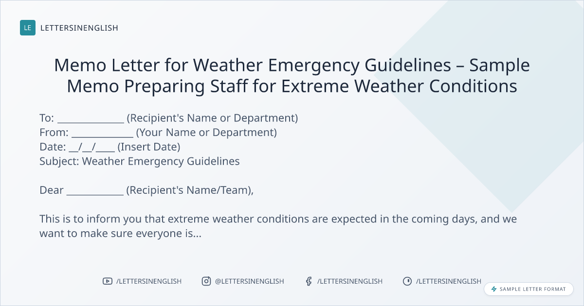Memo Letter for Weather Emergency Guidelines – Sample Memo Preparing Staff for Extreme Weather Conditions