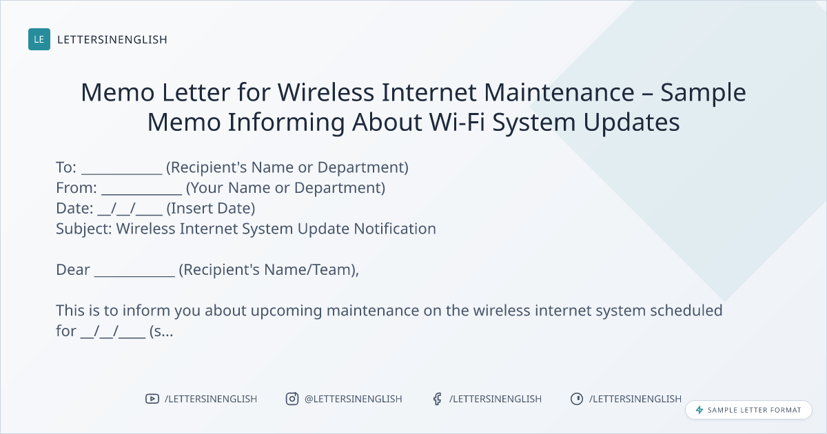 Memo Letter for Wireless Internet Maintenance – Sample Memo Informing About Wi-Fi System Updates