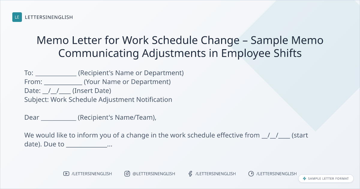 Memo Letter for Work Schedule Change – Sample Memo Communicating Adjustments in Employee Shifts