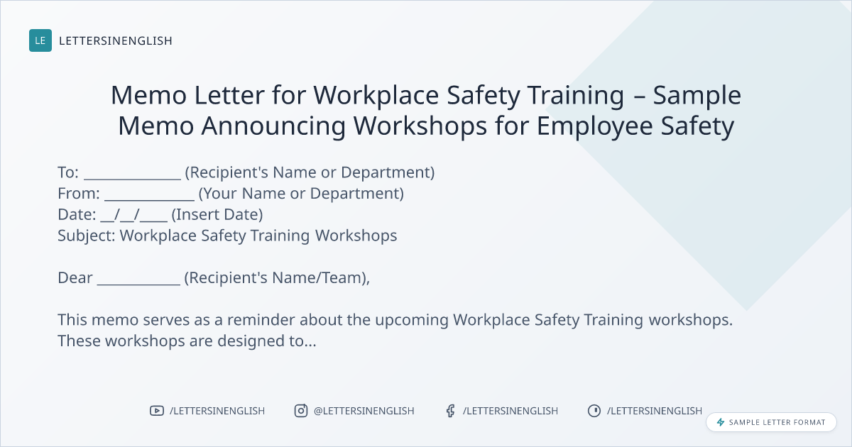 Memo Letter for Workplace Safety Training – Sample Memo Announcing Workshops for Employee Safety