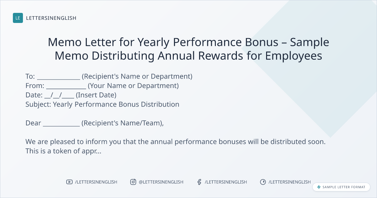 Memo Letter for Yearly Performance Bonus – Sample Memo Distributing Annual Rewards for Employees