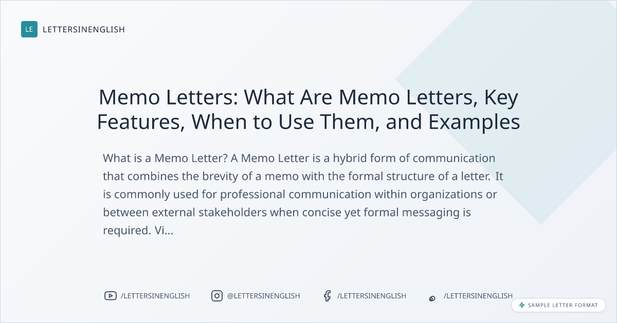 A Memo Letter is a hybrid form of communication that combines the brevity of a memo with the formal structure of a letter.