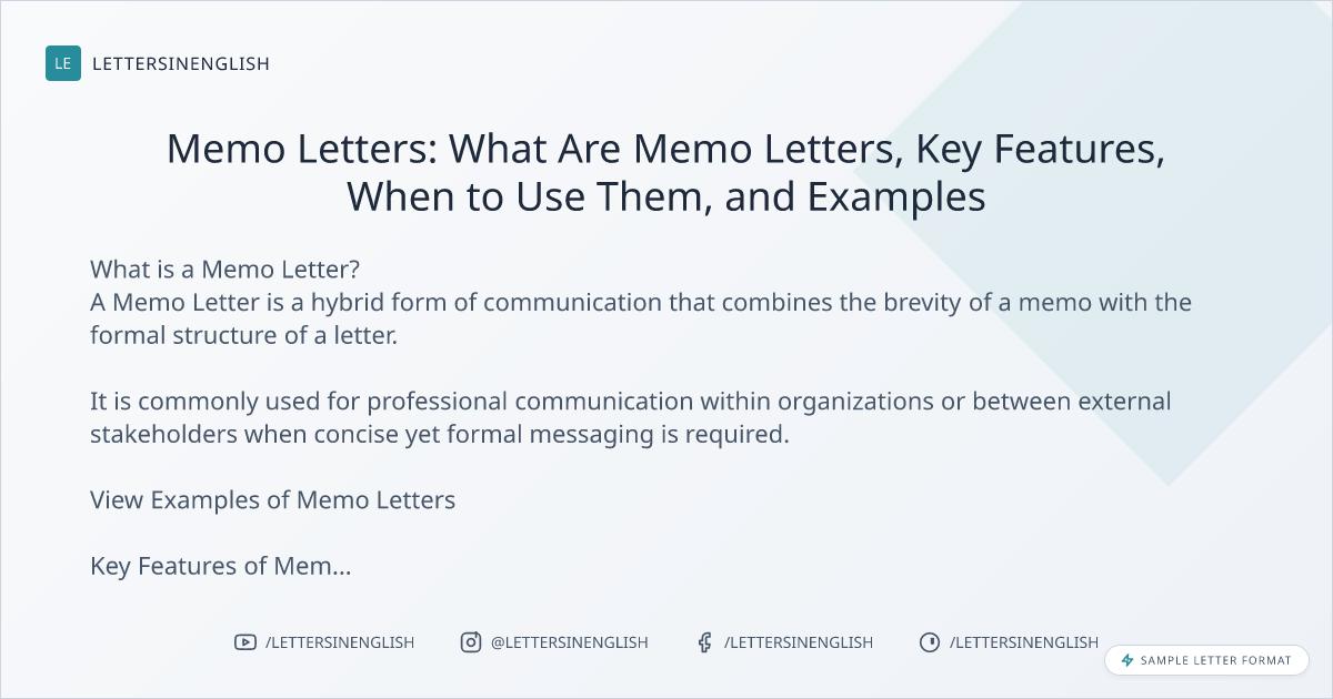 Memo Letters: What Are Memo Letters, Key Features, When to Use Them, and Examples