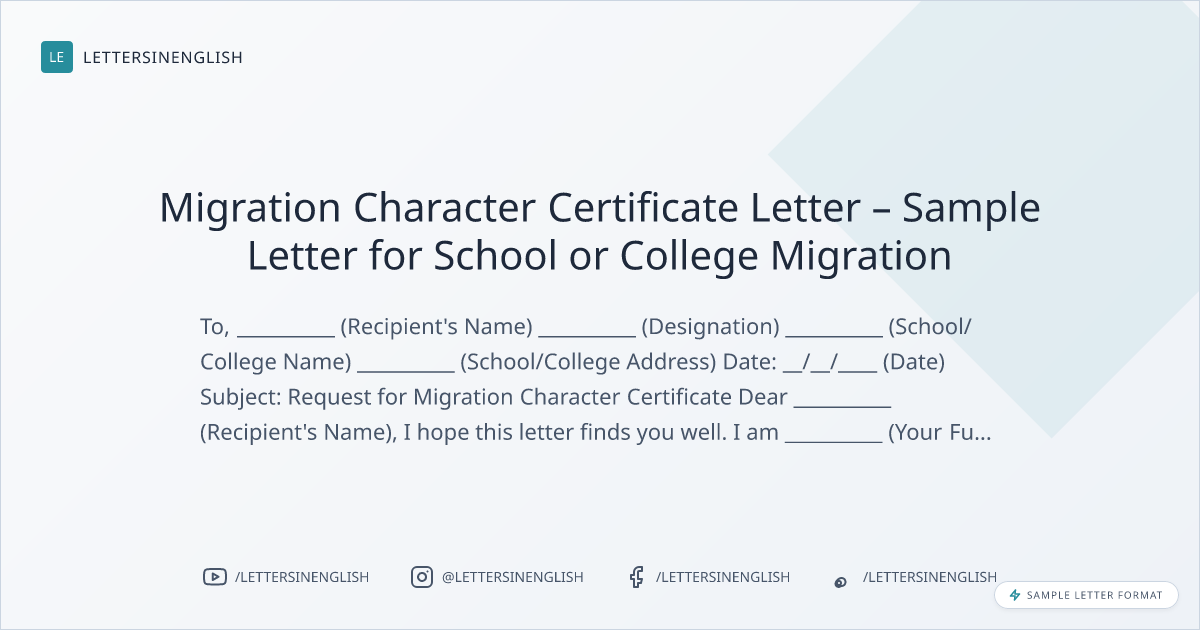 Migration Character Certificate Letter – Sample Letter for School or College Migration