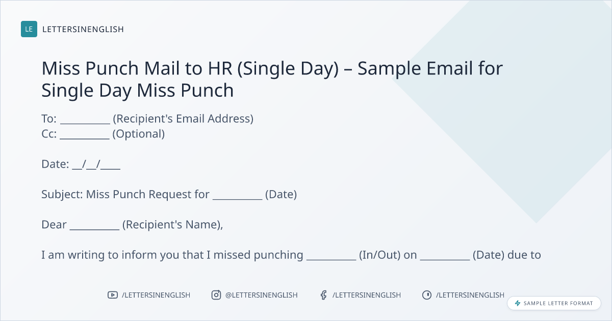 Miss Punch Mail to HR (Single Day) – Sample Email for Single Day Miss Punch