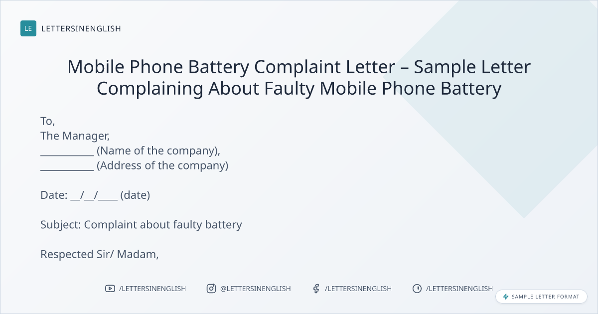 Mobile Phone Battery Complaint Letter – Sample Letter Complaining About Faulty Mobile Phone Battery