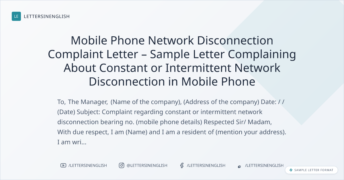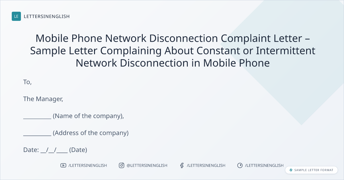 Mobile Phone Network Disconnection Complaint Letter – Sample Letter Complaining About Constant or Intermittent Network Disconnection in Mobile Phone