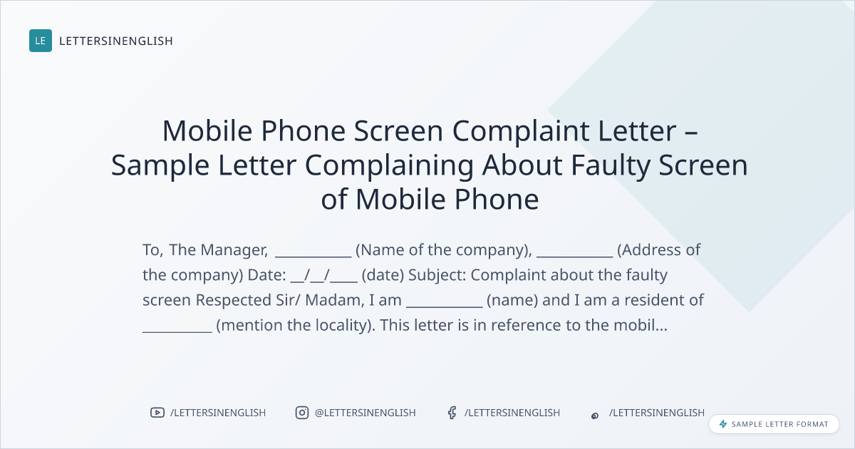 Mobile Phone Screen Complaint Letter – Sample Letter Complaining About Faulty Screen of Mobile Phone