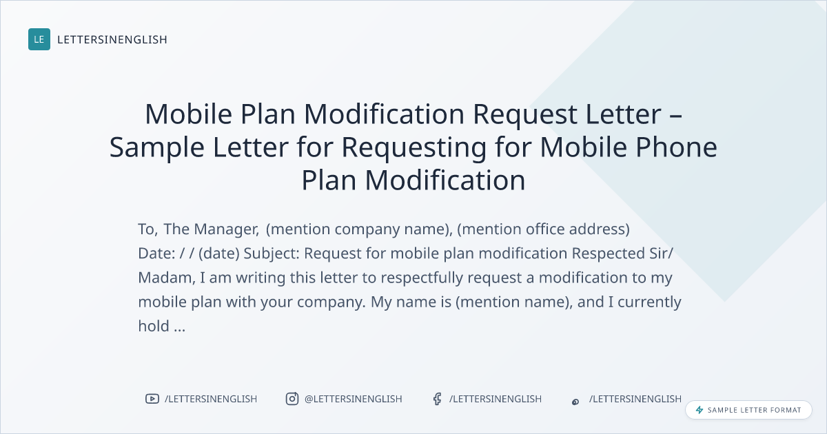 Mobile Plan Modification Request Letter – Sample Letter for Requesting for Mobile Phone Plan Modification