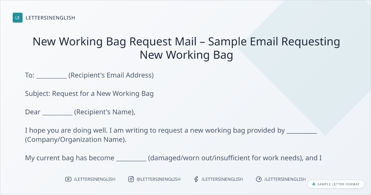 New Working Bag Request Mail – Sample Email for Requesting a Replacement Bag