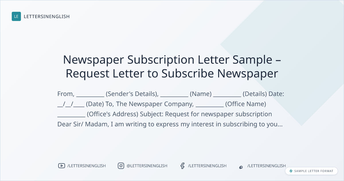 Newspaper Subscription Letter Sample – Request Letter to Subscribe Newspaper
