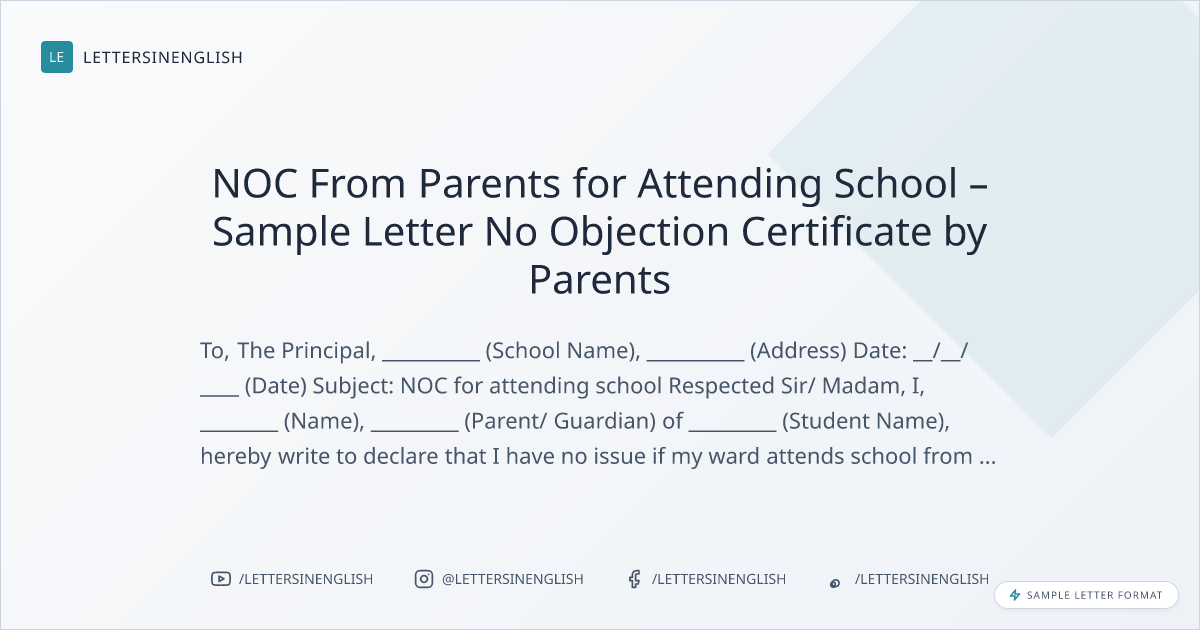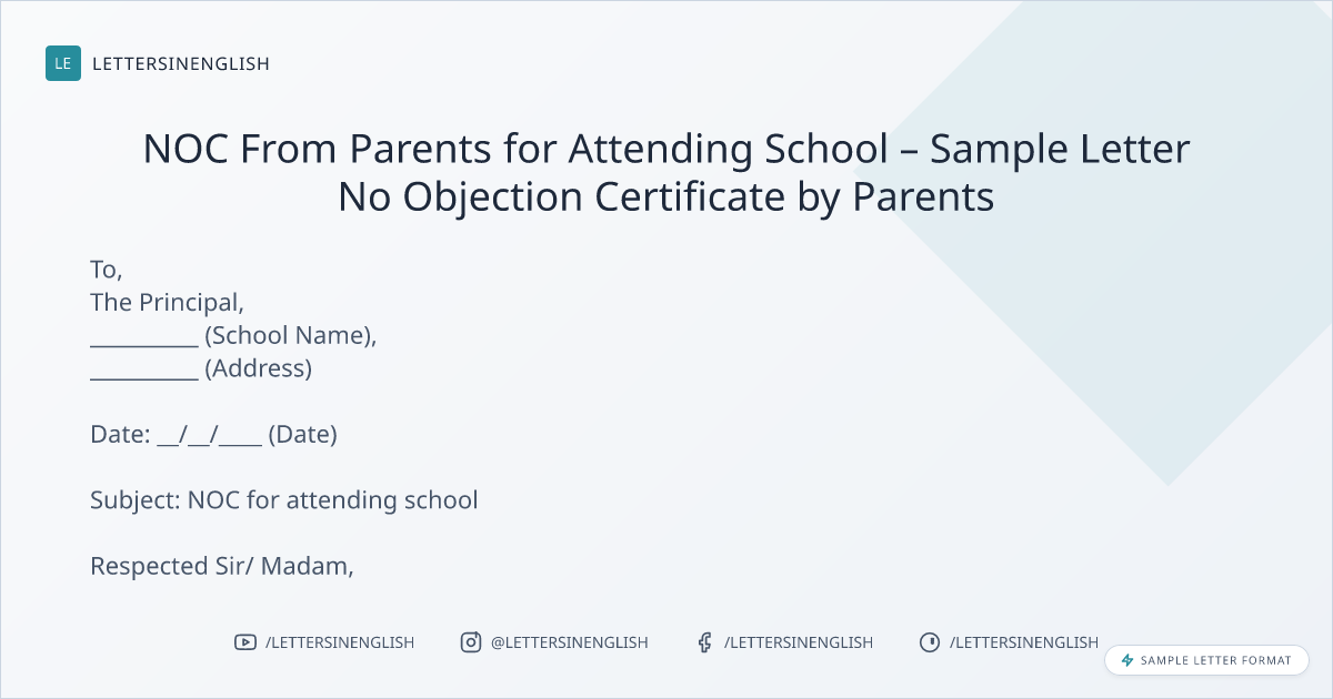 NOC From Parents for Attending School – Sample Letter No Objection Certificate by Parents