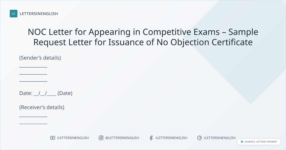 NOC Letter for Appearing in Competitive Exams – Sample Request Letter for Issuance of No Objection Certificate