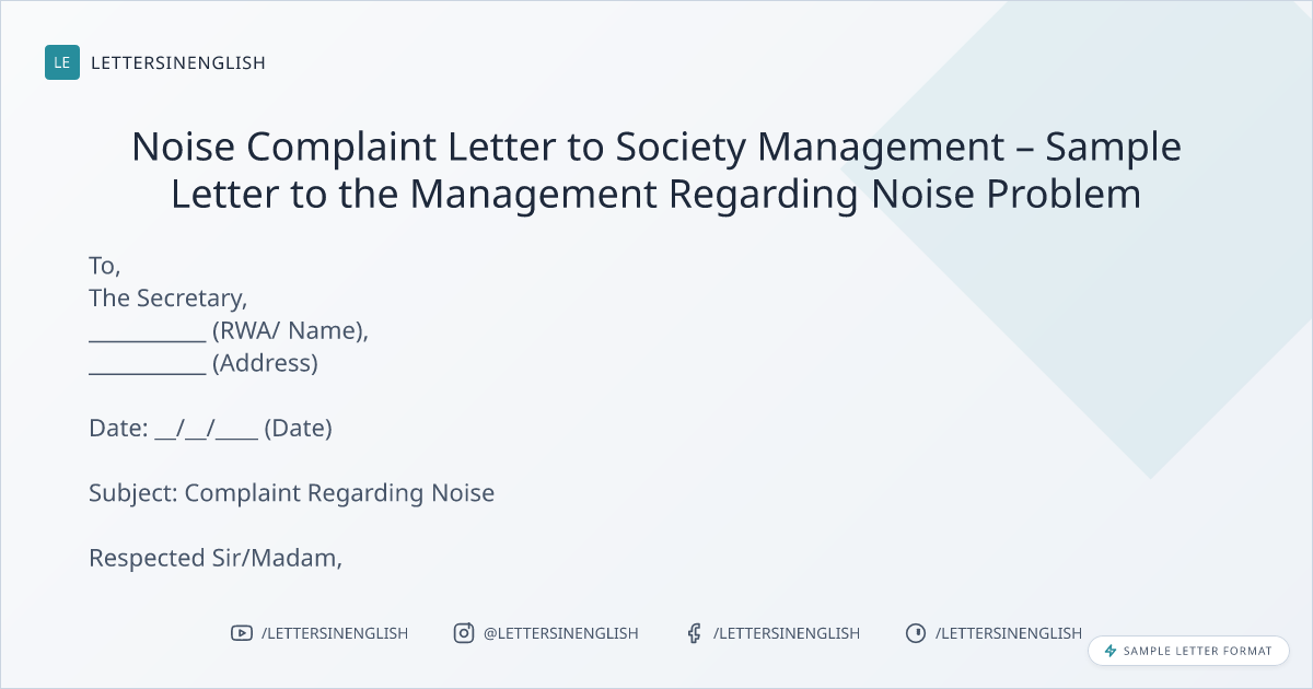 Noise Complaint Letter to Society Management – Sample Letter to the Management Regarding Noise Problem