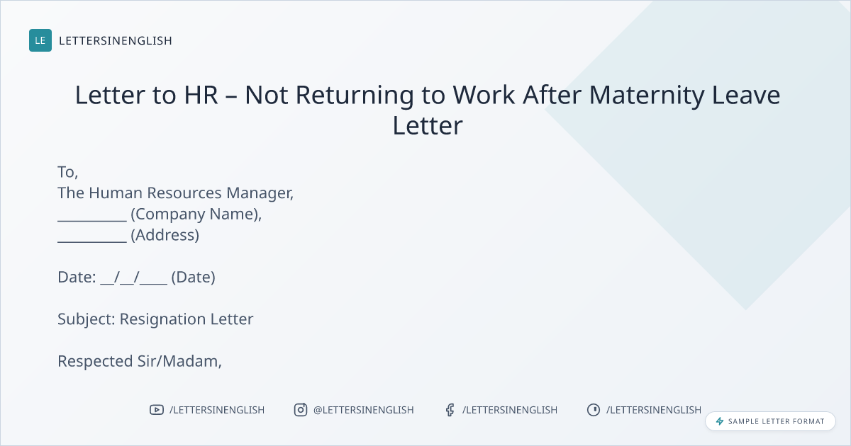 Letter to HR – Not Returning to Work After Maternity Leave Letter