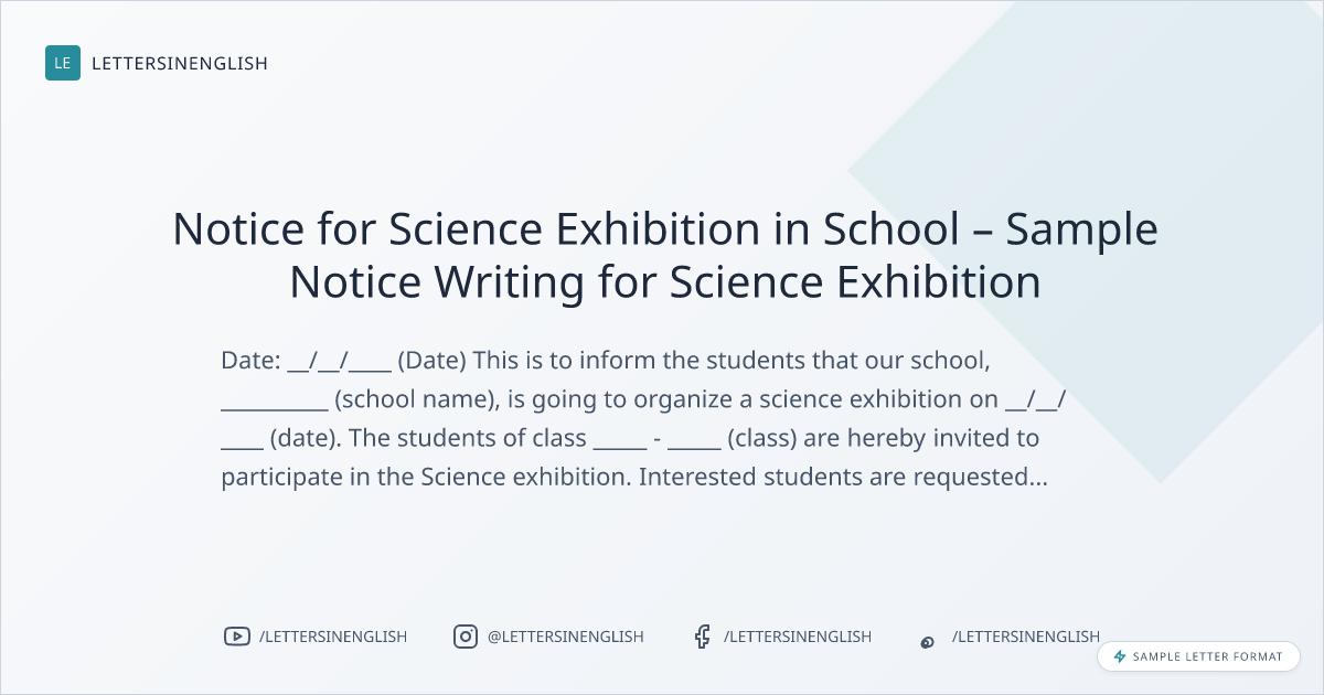 Notice for Science Exhibition in School – Sample Notice Writing for Science Exhibition