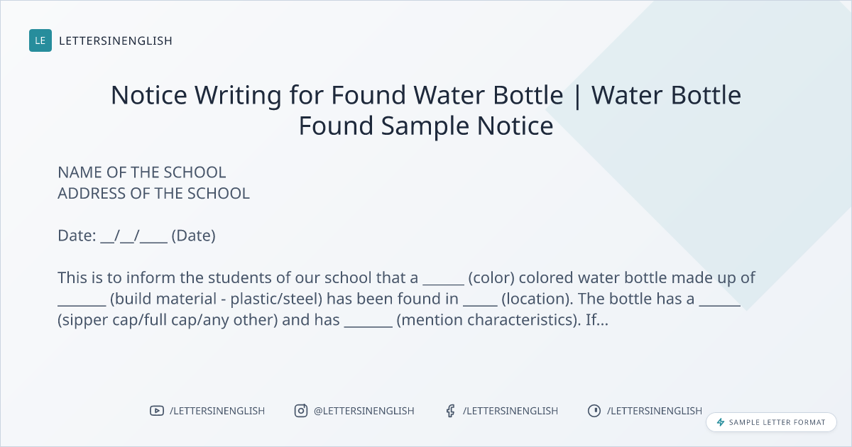 Notice Writing for Found Water Bottle | Water Bottle Found Sample Notice