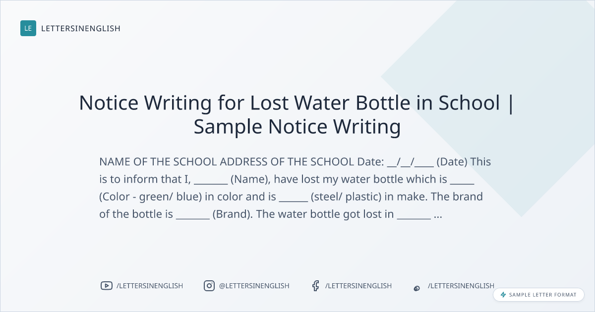 Sample Notice Template: Write a Notice for Lost Water Bottle In School