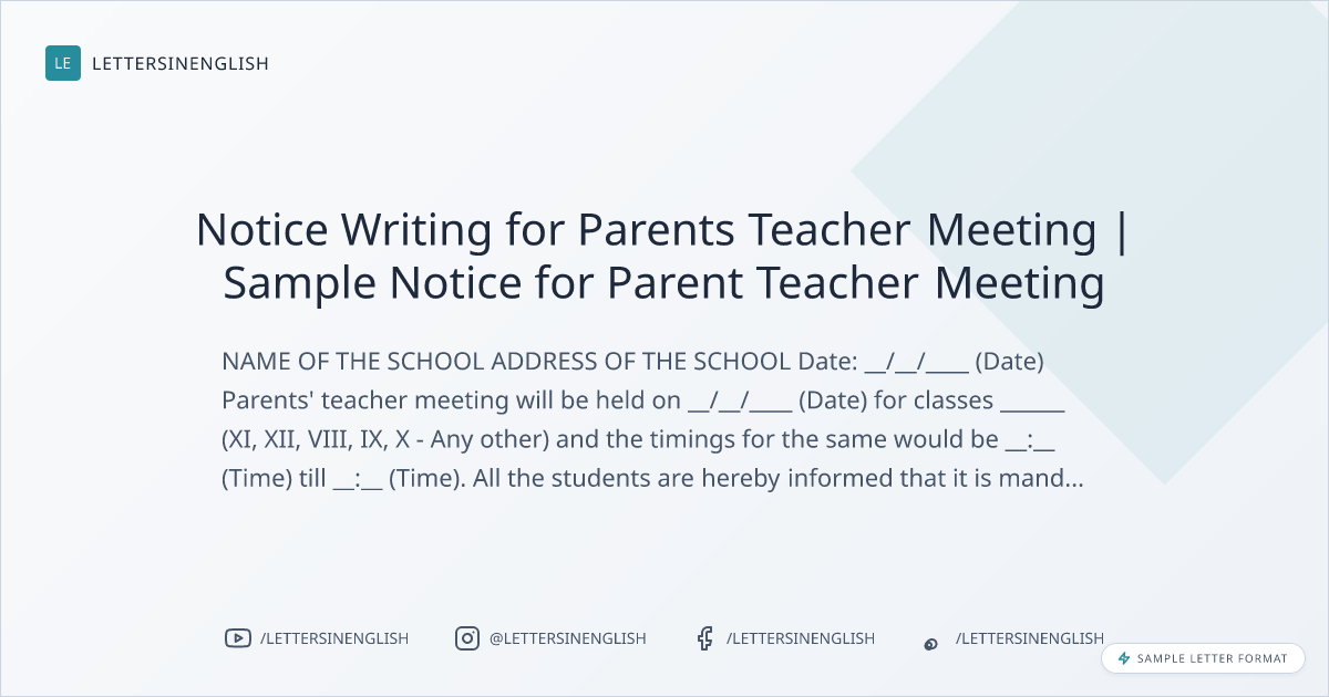 Notice Writing for Parents Teacher Meeting | Sample Notice for Parent Teacher Meeting