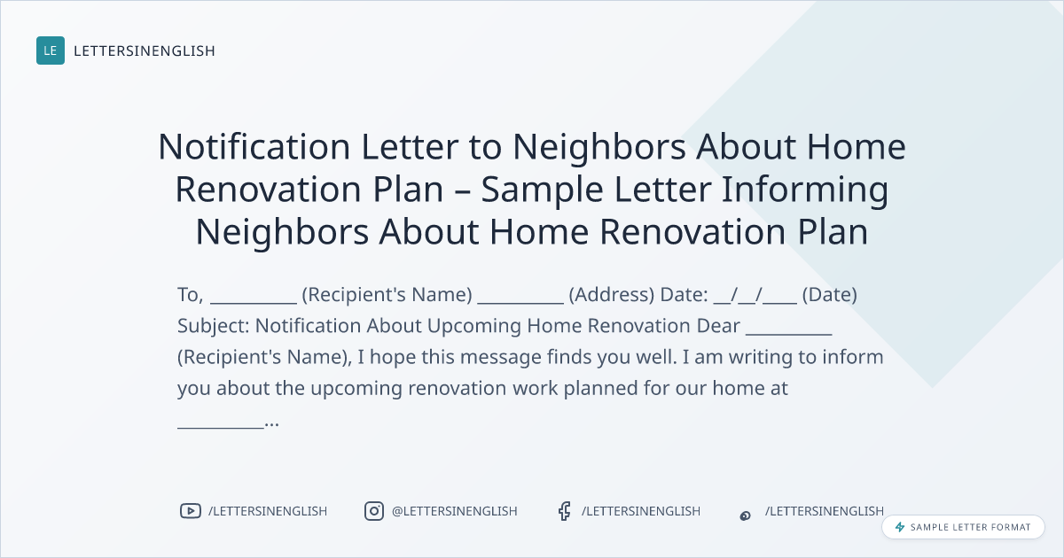 Notification Letter to Neighbors About Home Renovation Plan – Sample Letter Informing Neighbors About Home Renovation Plan