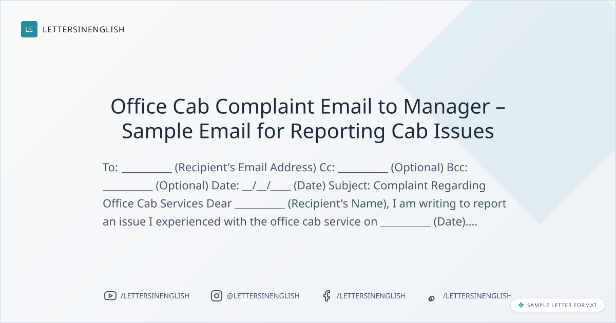 Office Cab Complaint Email to Manager – Sample Email for Reporting Cab Issues