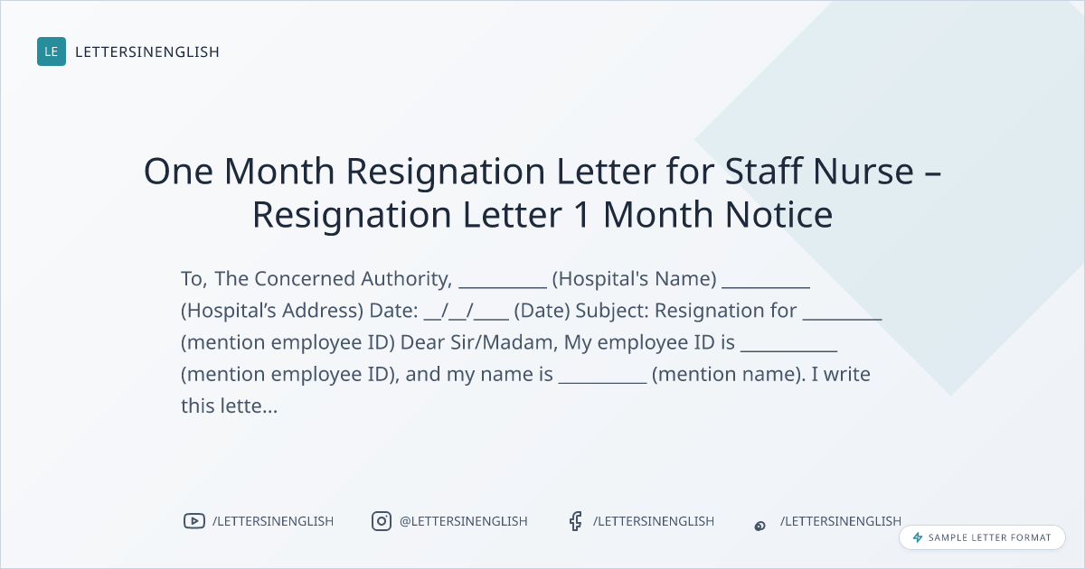 One Month Resignation Letter for Staff Nurse – Resignation Letter 1 Month Notice