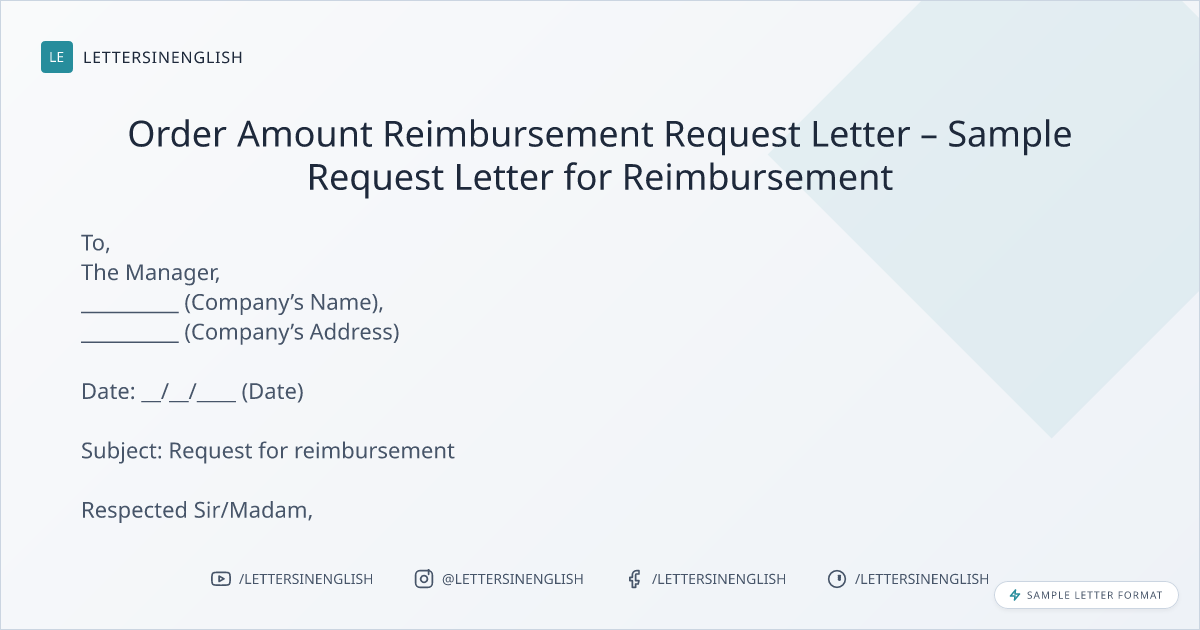 Order Amount Reimbursement Request Letter – Sample Request Letter for Reimbursement