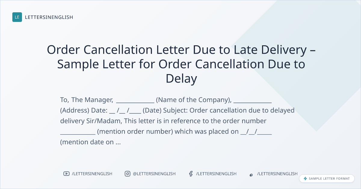 Order Cancellation Letter Due to Late Delivery – Sample Letter for Order Cancellation Due to Delay