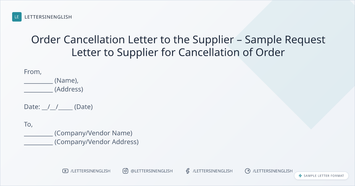 Order Cancellation Letter to the Supplier – Sample Request Letter to Supplier for Cancellation of Order