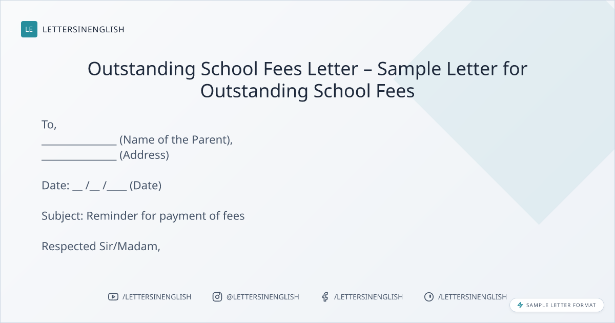 Sample Letter for Outstanding School Fees