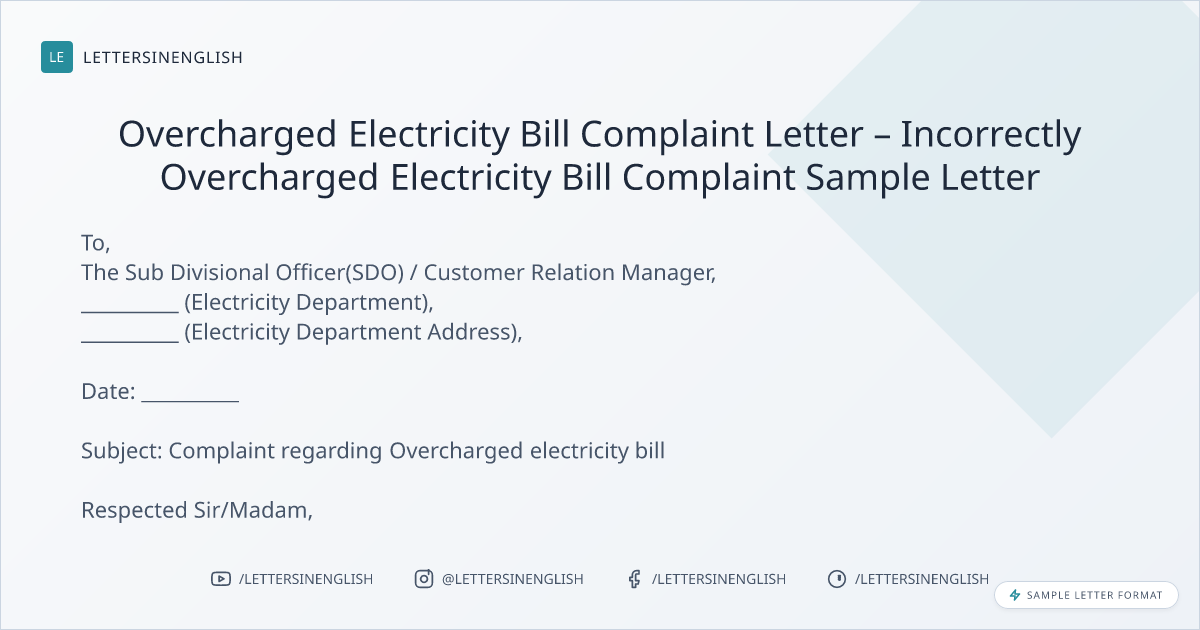 Complaint Letter About Overcharged Electricity Bill