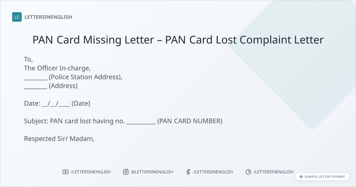 PAN Card Missing Letter – PAN Card Lost Complaint Letter