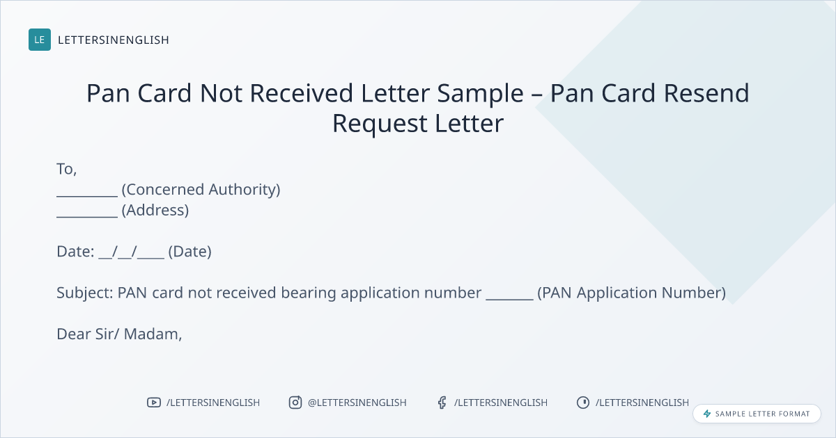Sample Pan Card Not Received Letter