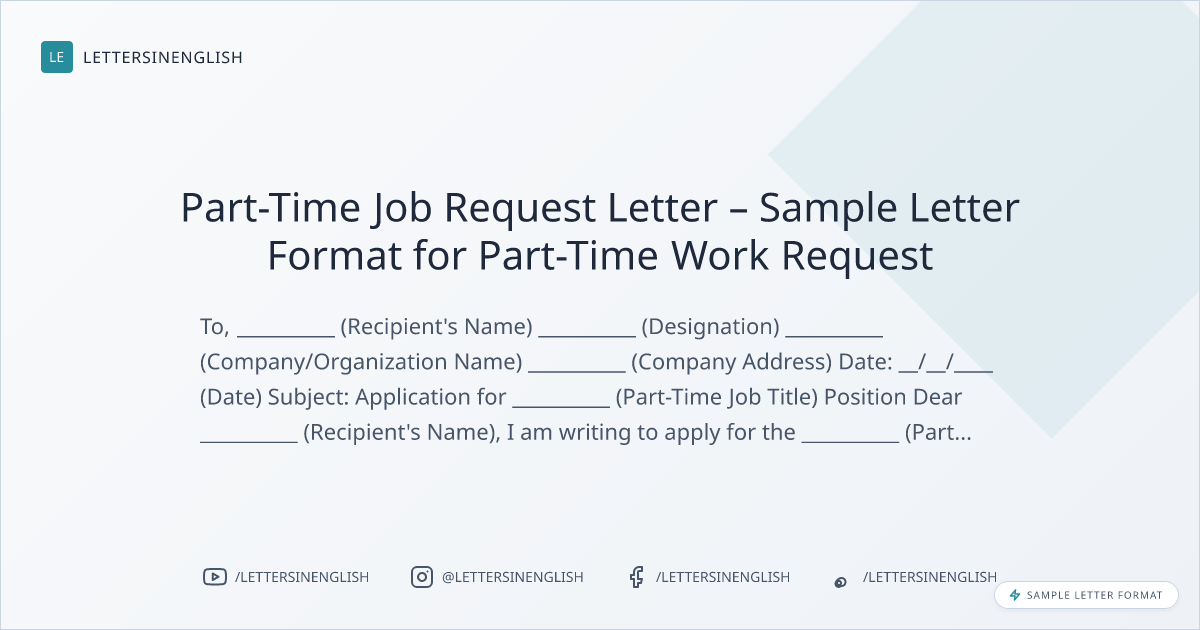 Part-Time Job Request Letter – Sample Letter Format for Part-Time Work Request