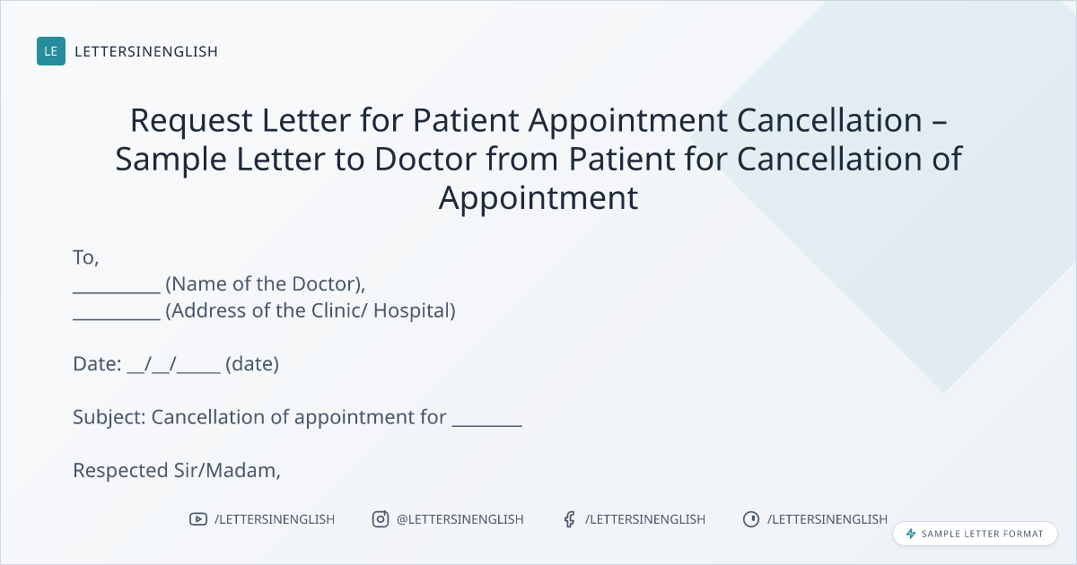 Request Letter for Patient Appointment Cancellation – Sample Letter to Doctor from Patient for Cancellation of Appointment