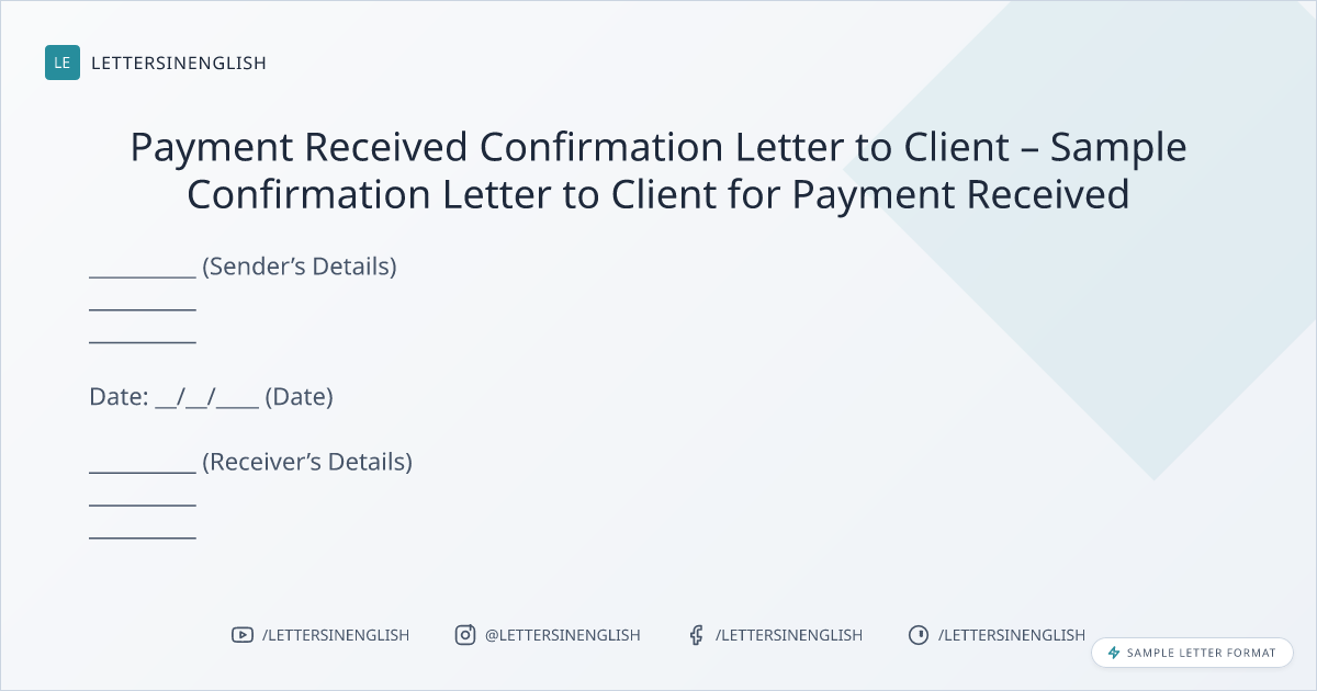 Payment Received Confirmation Letter to Client – Sample Confirmation Letter to Client for Payment Received