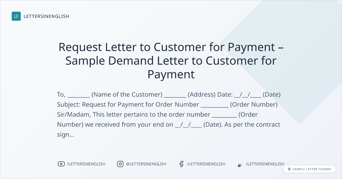 Request Letter to Customer for Payment – Sample Demand Letter to Customer for Payment