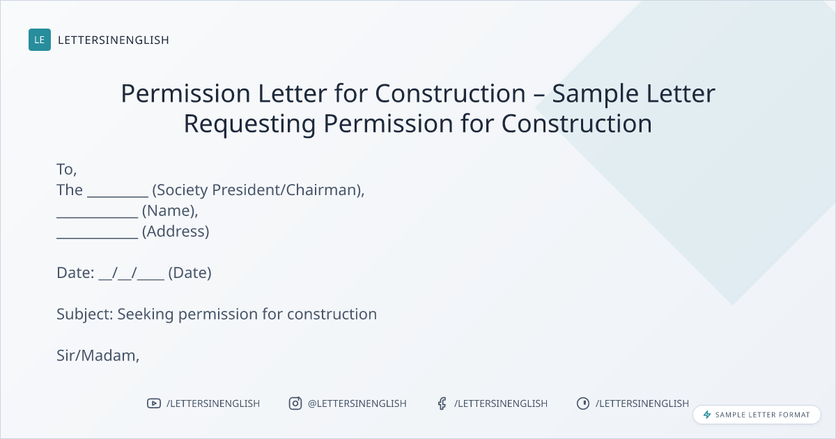 Permission Letter for Construction – Sample Letter Requesting Permission for Construction