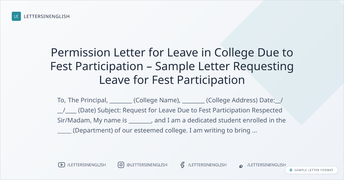 Permission Letter for Leave in College Due to Fest Participation – Sample Letter Requesting Leave for Fest Participation