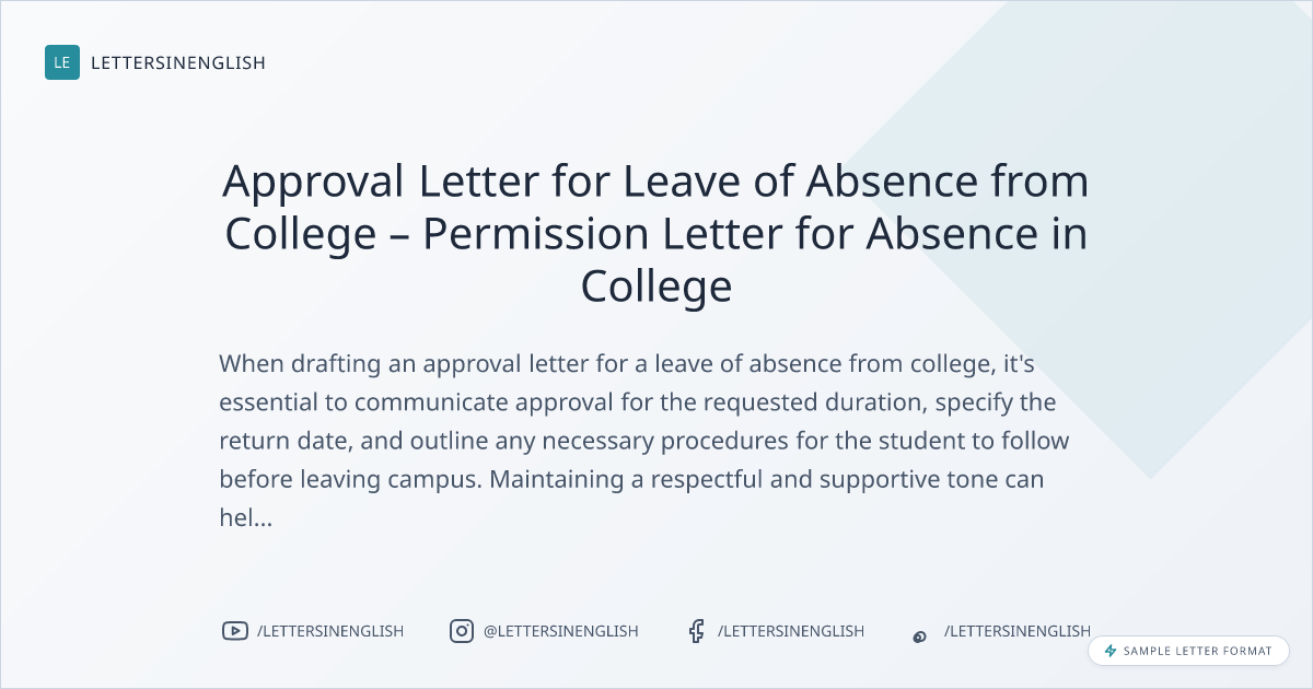 Approval Letter for Leave of Absence from College – Permission Letter for Absence in College