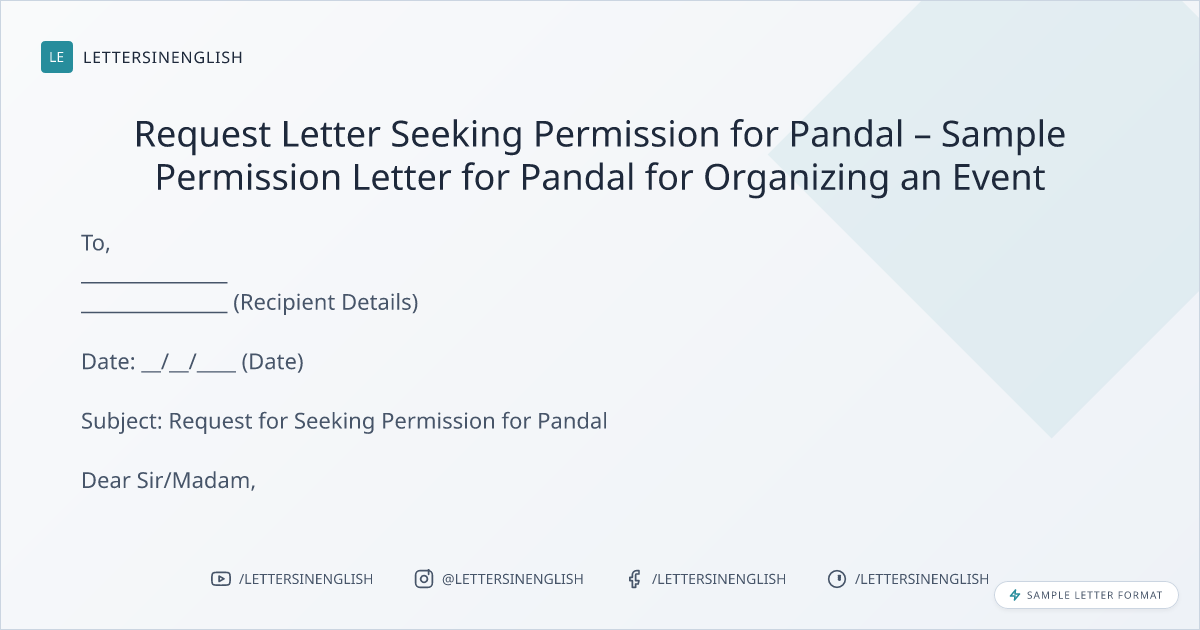 LETTERSINENGLISHRequest Letter Seeking Permission for Pandal – Sample Permission Letter for Pandal for Organizing an Event