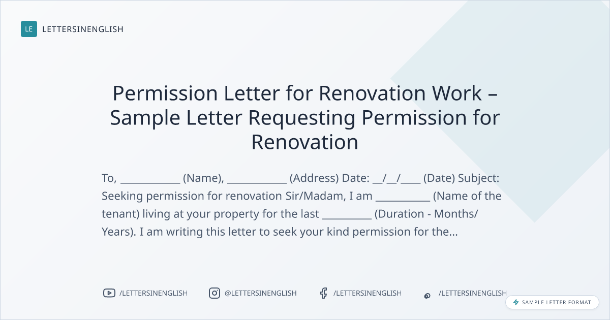 Permission Letter for Renovation Work – Sample Letter Requesting Permission for Renovation