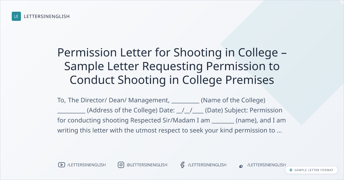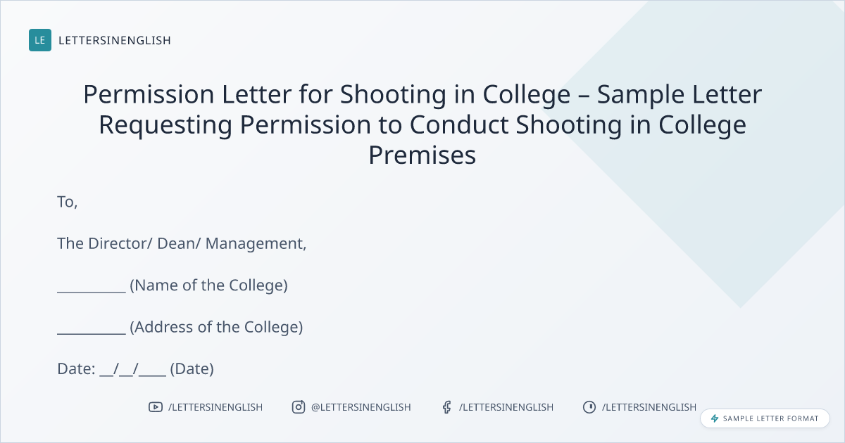 Permission Letter for Shooting in College – Sample Letter Requesting Permission to Conduct Shooting in College Premises