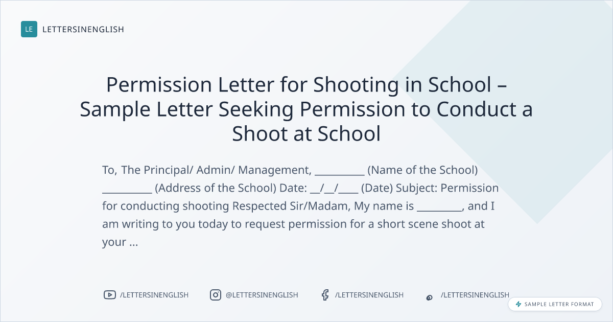 Permission Letter for Shooting in School – Sample Letter Seeking Permission to Conduct a Shoot at School