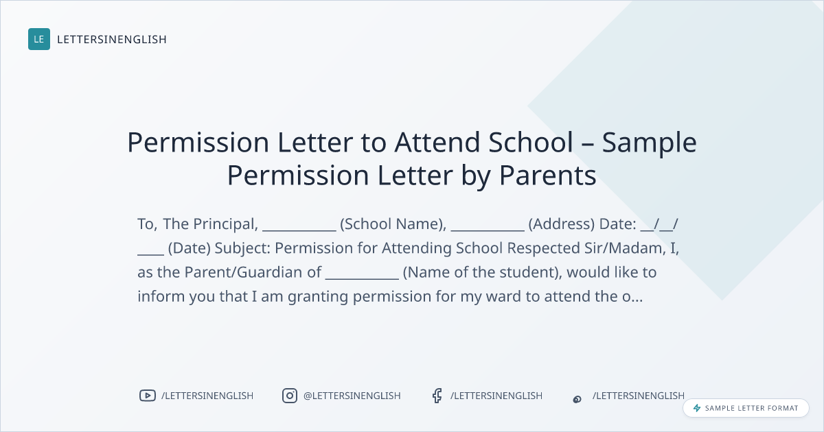 Permission Letter to Attend School – Sample Permission Letter by Parents