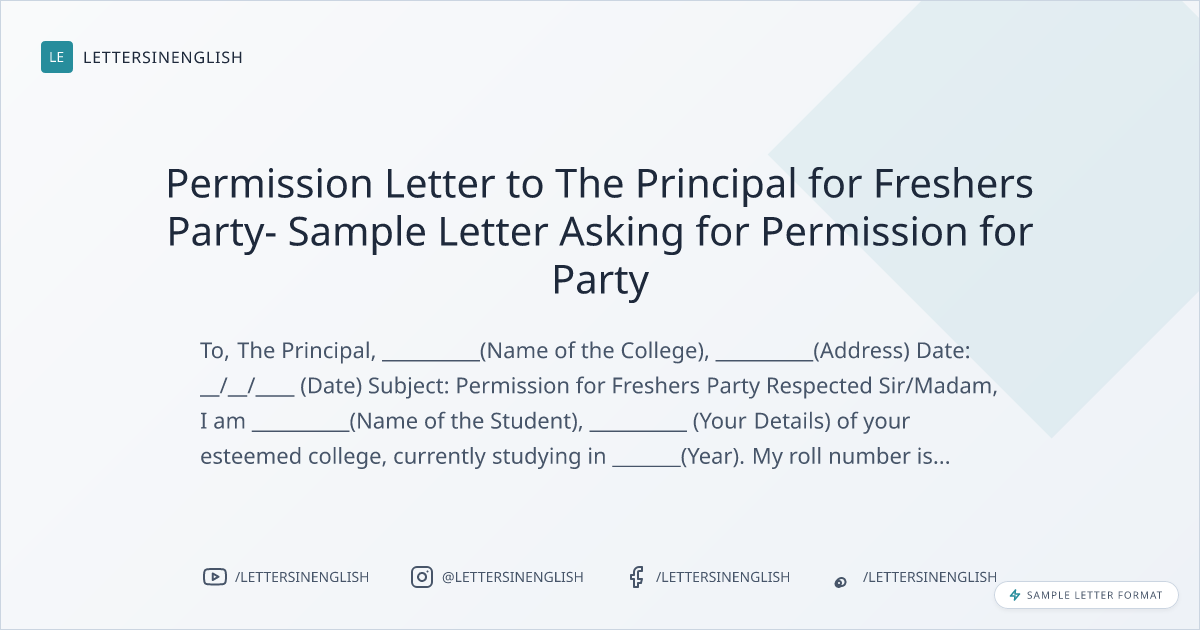Permission Letter to The Principal for Freshers Party- Sample Letter Asking for Permission for Party