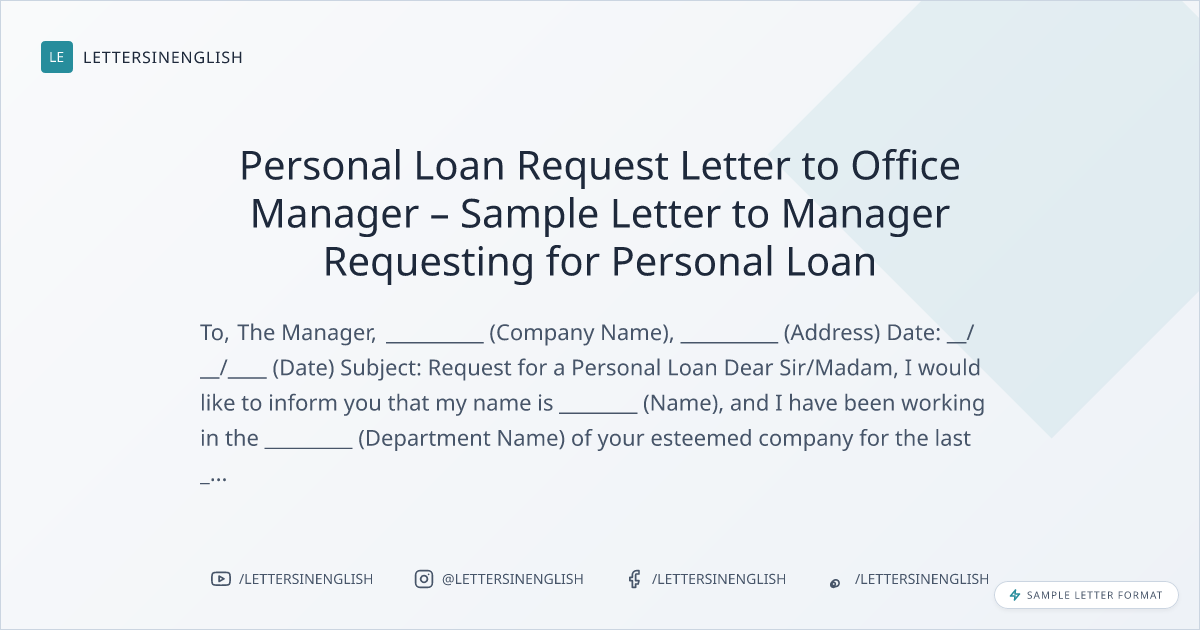 When composing a letter to request a personal loan from an office manager, clarity and politeness are essential. Start with a respectful salutation, clearly state the purpose in the subject line, and provide personal and employment details. Specify the loan amount, repayment duration, and number of installments. Politely request guidance and support throughout the process. End with a grateful closing and provide contact information. Avoid ambiguity and ensure all necessary details are included for a successful request.