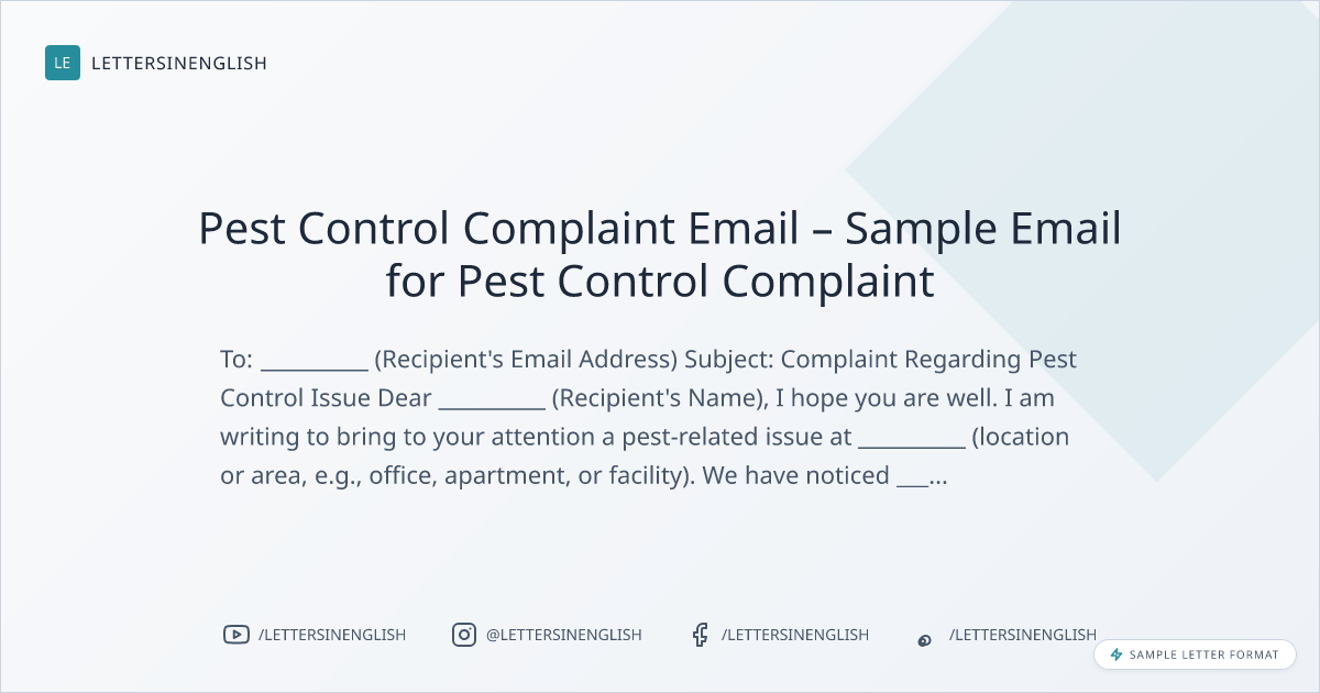 Pest Control Complaint Email – Sample Email for Pest Control Complaint